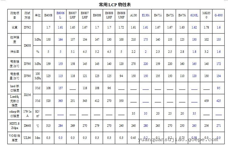 牌号 特性 Xydar G-930 30%玻纤,高机械强度 Xydar MG-850 50%玻纤/矿纤混合填充,超高流动性、低翘曲