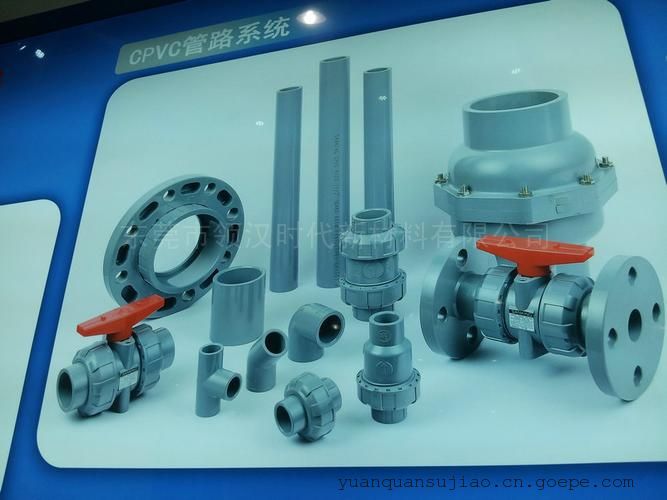 管材:CPVC主要用于生产板材、棒材、管材输送热水及腐蚀性介质,在不超过 100 ℃时可以保持足够的强度,而且在较高的内压下可以长期使用。 CPVC 的重量是黄 铜的 1/6 ,钢的 1/5 ,且有极低的导热性,因此,用 CPVC 制造的管道,重量轻,隔热性能好,不需保温。★ CPVC 管可用作工厂的热污水管,电镀溶液管道,热化学试剂输送管。